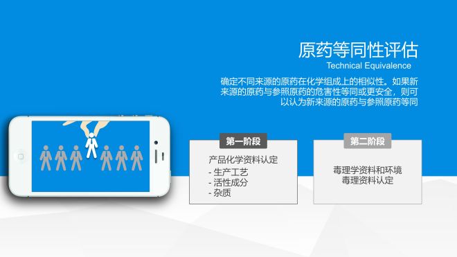 TE评估通常分阶段进行,第一阶段为产品化学资料认定,主要包括原药的生产工艺、产品化学、原药以及杂质的质量分析。若出现新的杂质或杂质含量增加等情况,则第一阶段认定不等同,需要进入第二阶段,即毒理与生态环境资料认定。